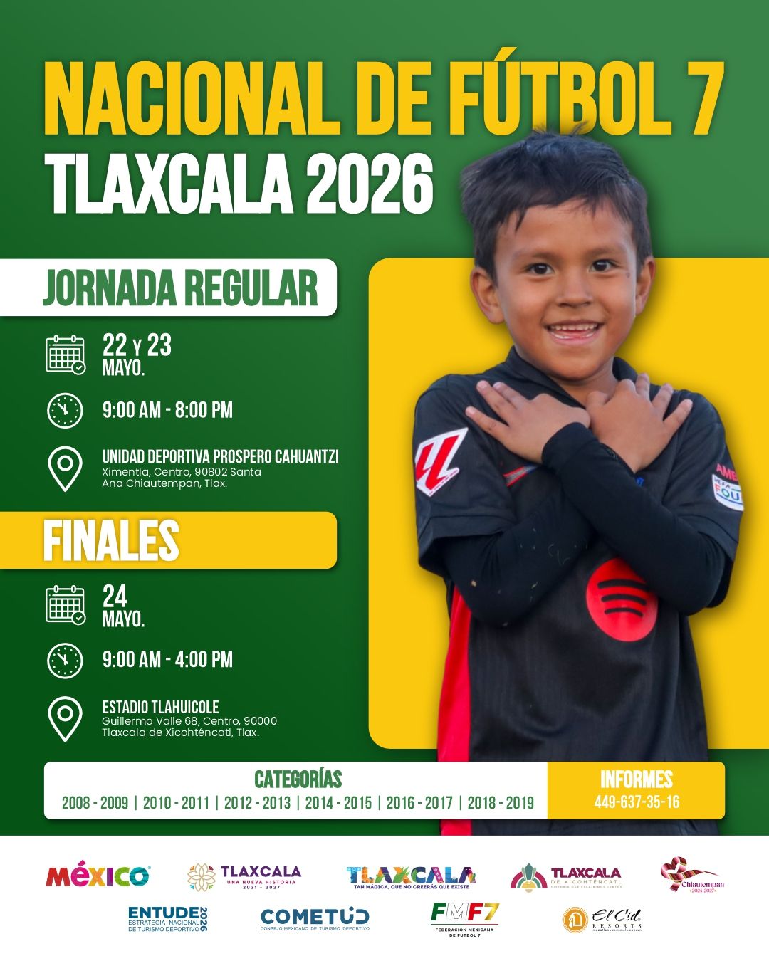 “El registro es obligatorio para la participación en el evento Nacional de Fútbol 7, Tlaxcala 2026. Este registro es únicamente con fines informativos para la Estrategia Nacional de Turismo Deportivo.”