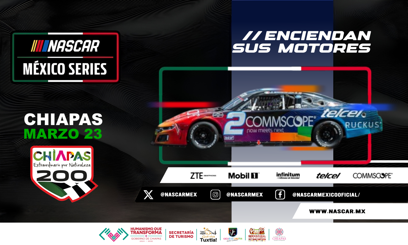 Nascarestará presente en el Súper Óvalo de Chiapascon un verdadero festival racing, que brindará emociones sin límite a todos los amantes de la velocidad y el deporte del motor.