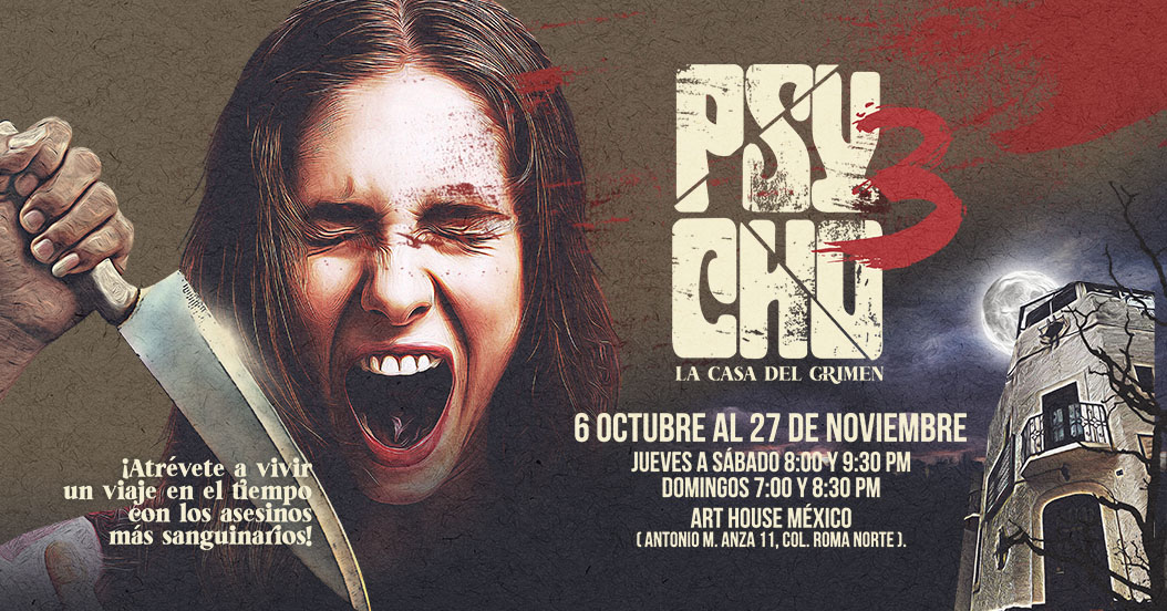 Vívelo ahora📢Art House México presenta la experiencia inigualablePsycho 3: La casa del Crimen.📢