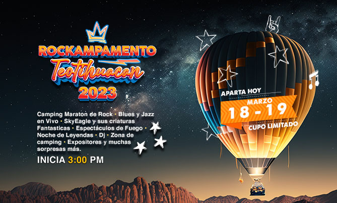 Comprar ahoraVen y acampa en el equinoccio de Teotihuacan, disfruta de un maratón de Rock, Blues y Jazz, Globos Aerostáticos, Espectáculos, expositores, gastronomía y mucha diversión.